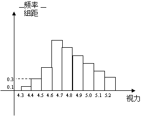 7.为了解某校高三学生的视力情况,随机地抽查了该校100名高三学生的视力情况,得到频率分布直方图如上图,由于不慎将部分数据丢失,但知道前4组的频数成等比数列,后6组的频数成等差数列,设最大频率为