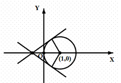 也应该与圆有两个交点,由图可以知道,临界情况即是与圆相切的时候,经计算可得,两种相切分别对应