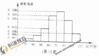 (13)某小学为了解学生数学课程的学习情况,在3000名学生中随机抽取200名,并统计这200名学生的某此数学考试成绩,得到了样本的频率分布直方图(如图)。根据频率分布直方图3000名学生在该次数学考试中成绩小于60分的学生数是_____________________