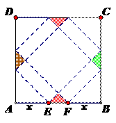 四个点重合于图中的点P,正好形成一个正四棱柱形状的包装盒,E、F在AB上是被切去的等腰直角三角形斜边的两个端点,设AE=FB=xcm