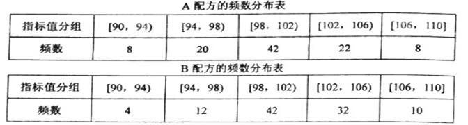 某种产品的质量以其质量指标值衡量,质量指标值越大表明质量越好,且质量指标值大于或等于102的产品为优质品,现用两种新配方(分别称为A配方和B配方)做试验,各生产了100件这种产品,并测量了每件产品的质量指标值,得到下面试验结果: