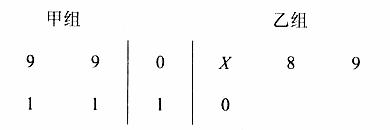 以下茎叶图记录了甲、乙两组各四名同学的植树棵数。乙组记录中有一个数据模糊,无法确认,在图中经X表示。