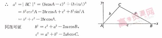 解 余弦定理:三角形任何一边的平方等于其他两遍平方的和减去这两边与它们夹角的余弦之积的两倍。或:在△ABC中,a,b,c为A,B,C的对边,有