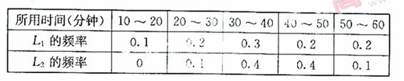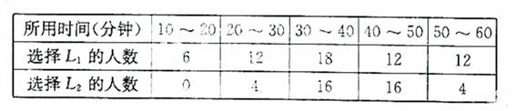 如图,A地到火车站共有两条路径L1和L2,现随机抽取100位从A地到火车站的人进行调查,调查结果如下: