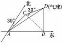 11.以40 km/h向北偏东30°航行的科学探测船上释放了一个探测气球,气球顺风向正东飘去,3分钟后气球上升到1 000米处,从探测船上观察气球,仰角为30°,求气球的水平飘移速度.
