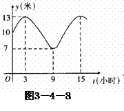 在一个周期内由最大变到最小需9-3=6小时,此为半个周期,所以函数的最小正周期为12小时,因此