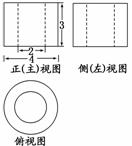 解析:由三视图可知,该几何体是一个由底面半径为2高为3的圆柱中间挖去一个底面半径为1的等高圆柱后余下的部分,所以,其体积为π×(22-12)×3=9π.