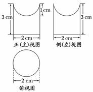解析:由三视图可知,此几何体为底面半径为1 cm、高为3 cm的圆柱上部去掉一个半径为1 cm的半球,所以其体积为V=πr2h-πr3=3π-π=π(cm3).