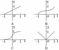 2.设D是由所确定的平面区域,记D被夹在直线x=-1和x=t(t∈[-1,1])间的部分的面积为S,则函数S=f(t)的大致图象为( )