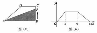 7.下图(a),在直角梯形ABCD中,∠B=90°,DC∥AB,动点P从B点出发,由B?C?D?A沿边运动,设点P运动的路程为x,△ABP的面积为y,如果关于x的函数y的图象如下图(b),则△ABC的面积等于 ( )