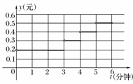 (1)在所给坐标系中,画出一次通话在6分钟内(包括6分钟)的通话费y(元)关于通话时间t(分钟)的函数图象;