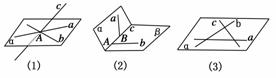 解析:三条直线相交于一点,最多可确定3个平面,如图(1);三条直线相交于两点,最多可确定2个平面,如图(2);三条直线相交于三点,最多可确定1个平面,如图(3).
