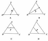 (2010·辽宁省东北育才中学高三模拟)如图在正四棱锥S-ABCD中,E是BC的中点,P点在侧面△SCD内及其边界上运动,并且总是保持PE⊥AC,则动点P的轨迹与△SCD组成的相关图形是 ( )