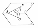 解法二:如图,α-l-β成45°角,∠BAC=45°,∠BCO=45°为二面角的平面角,BO⊥α,设OB=OC=1,则BC=,AO=.tan∠BAO==,∠BAO=30°.