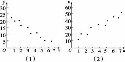 9.对变量x,y有观测数据(xi,yi)(i=1,2,…,10),得散点图(1);对变量u,v,有观测数据(ui,vi)(i=1,2,…,10),得散点图(2),由这两个散点图可以判断( )