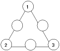 7、在下面的○里填上适当的数,使每一行的三个数相加都得9。