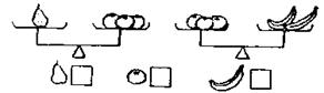 最短的画“√”,最长的画“○”。 4、最轻的画“√”,最重的画“○”。