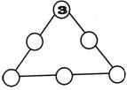 2、在○里填上2、4、5、6、7,使每行三个数和都为12。