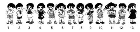 广场上有13个小朋友站成一排,从左边开始编号。想一想: