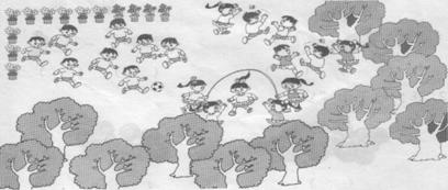 1、一群小动物有秩序的排成一队在滑滑梯,小羊的前面有6只
