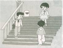 2.“上下楼,靠右走”,哪个小朋友走错了? 走对的打“√”,走错的“×”。