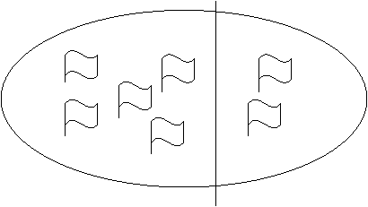 (11)这大圈里一共有7面旗子,这条线的左边是5面,这条线的右边是2面,请你用7、5、2这三个数写出两道加法题和两道减法题。H