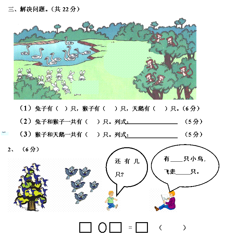7、圈一圈,算一算。(6分)
