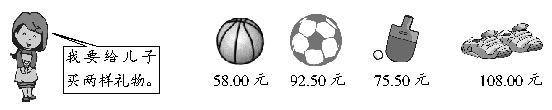 请你帮明明挑选两样礼物,并帮妈妈算算应找回多少钱。
