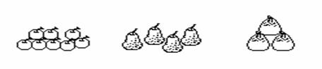6、苹果比梨多( )个,桃比苹果少( )个,梨比桃多( )个,三种水果一共( )个。