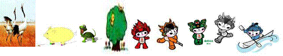 (1)做操的小动物和福娃一共有( )个;福娃们在大树的( )面做操。