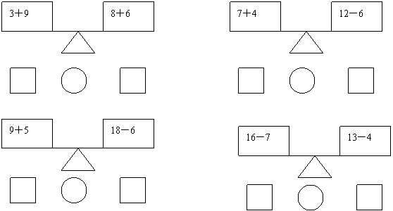 2+9= 5+7= 10+5= 12-3= 8-4=