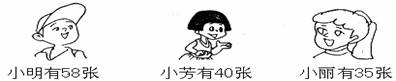 (2)小芳比小明少多少张邮票?比小丽多多少张?