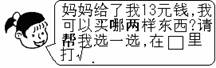 (2)军军买帽子找到3元,他付了多少元?