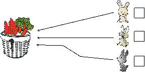 哪只兔子最先吃到胡萝卜?在它旁边的□里画“○”。