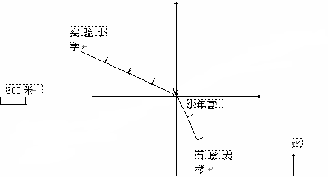 (2)百货大楼在少年宫的____偏____ _____方向,距离_____米;