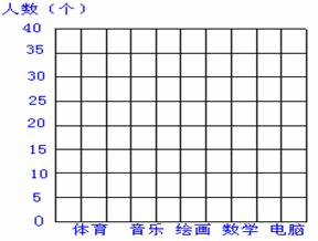 幸福小学四年级全体学生参加课外兴趣小组体育、音乐、绘画、数学与电脑的人数分别是:16人、20人、18人、26人、40人。你能将这些成绩绘制成条形统计图吗?