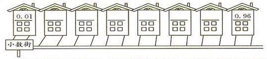 在数学王国里有一条小数街,房子的门牌号码是按小到大的顺序排列的,你能把下面门牌号表示的小数写出来,按顺序填在房子上吗?(12分)