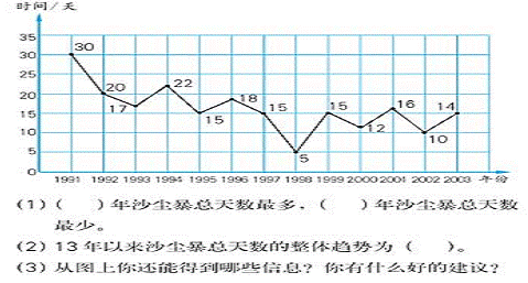 3、练习:1991-2003年沙尘暴总天数的变化情况(幻灯片显示)