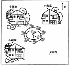 5.小强、小来、小超三个好朋友的家都在公园附近,他们周末经常到公园来游玩。