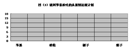 2、 为庆祝“六一”儿童节,四(3)班同学准备举行庆祝活动,为此班委研究决定购买一些水果。载购买水果前要调查一下,吃某种水果人数各有多少。