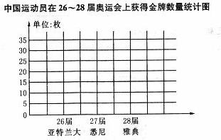 1、 中国运动健儿在26届亚特兰大奥运会、27届悉尼奥运会、28届雅典奥运会上获得的金牌情况统计如下表。