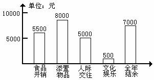(2)从统计图中你还可以看出哪些信息?请你对他家的日常开支提出一些建议,并简要说明理由。