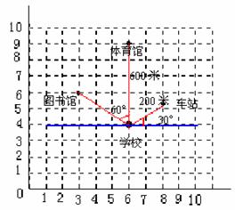 ①图书馆所在的位置是在( , ),若以 学校为观察点,图书馆在学校 偏