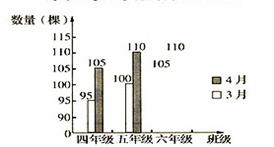 (2) 3月份3个年级共植树( )棵,4月份比3月份多植树( )棵。(2分)