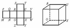 7.左图是正方体的表面展开图,如果将其合成原来的正方体(右图)时,与点P重合的两点应该是 ( )