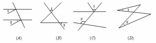 (A)同位角相等 (B)内错角相等 (C)同旁内角互补 (D)同旁内角相等
