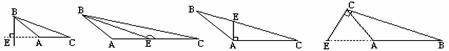 9、在数学课上,同学们在练习画ABC的高BE时,有一部分同学画出下列四种图形,请你算一算,错误的个数为 ( )