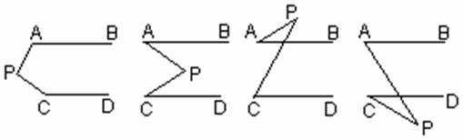 如图,折线APB是夹在两平行线