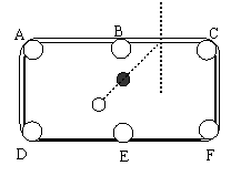 如图所示:打台球时,用白球沿虚线方向击打黑球,已知入射角等于反射角,请问黑球经过一次反弹后是否会进入F号洞?请你用尺规作图来判断。(请保留作图痕迹,不必写作法、证明)