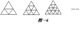 有边长为1的等边三角形卡片若干,使用这些三角形卡片拼出边长分别是2、3、4…的等边三角形(如图6所示),根据图形规律推断,每个等边三角形所用卡片总数S与边长n之间的关系是___________(用n表示S)。